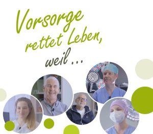 Zwei Patienten, ein Arzt, eine Stations- und eine OP-Schwester erklären im Video aufgrund persönlicher Erfahrungen und medizinischem Wissen warum Vorsorge so wichtig ist.